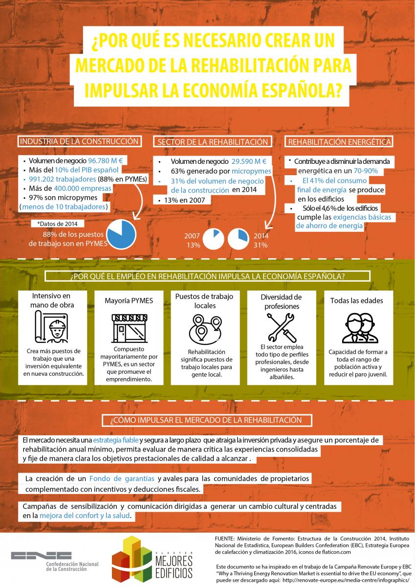 El Clúster Mejores Edificios y la Confederación Nacional de la Construcción han editado una infografía que aporta de manera esquemática todo lo que se necesita saber del mercado de la rehabilitación edificatoria.